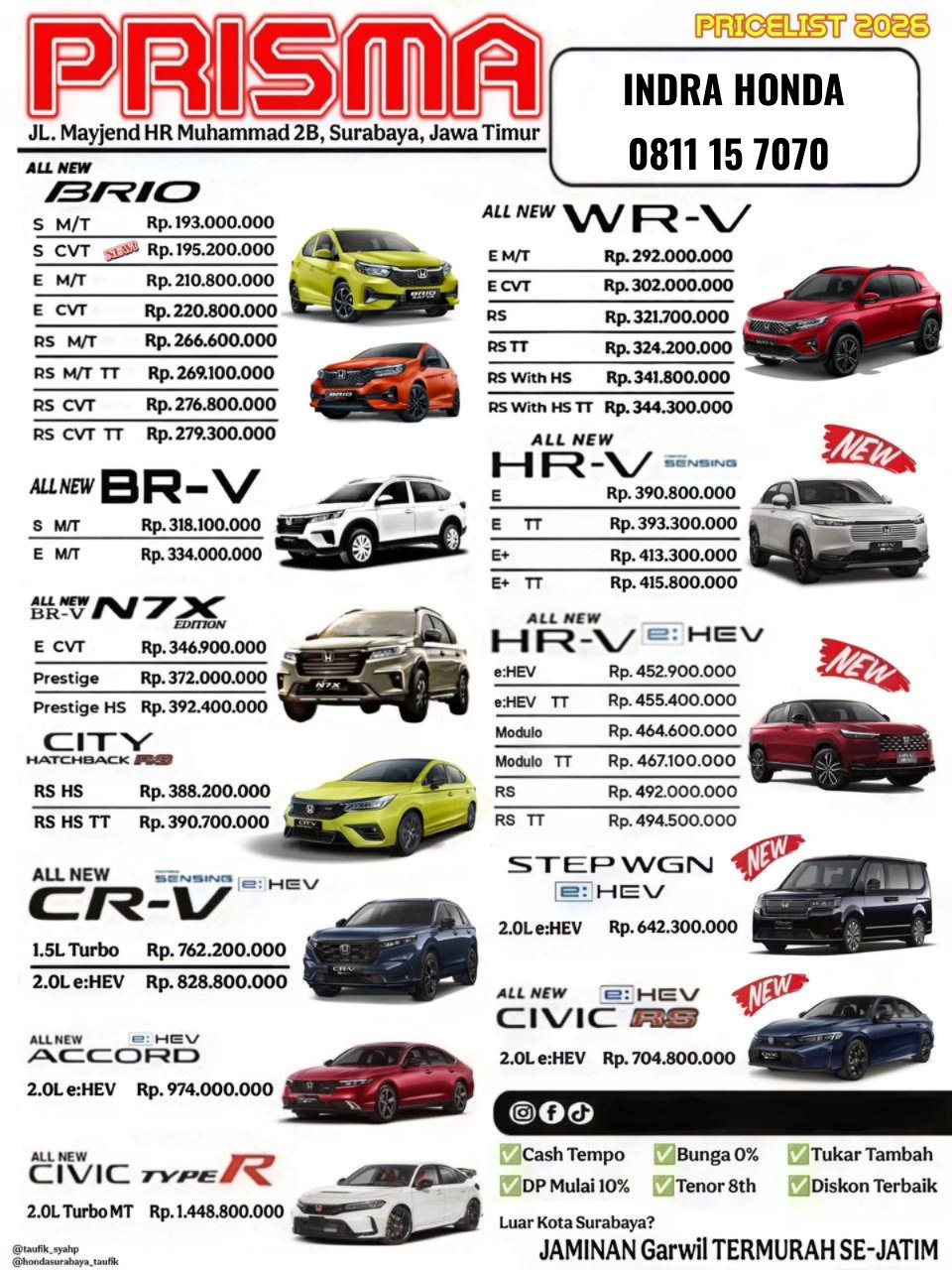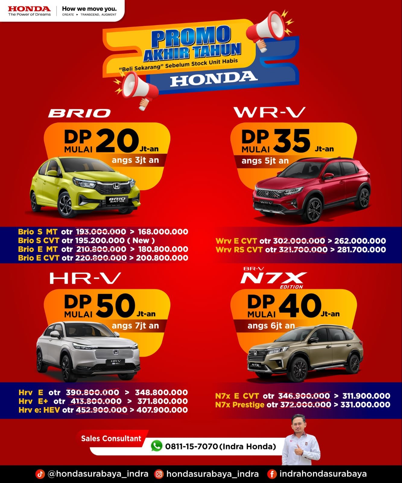 Selamat datang di Dealer Honda Surabaya, destinasi utama Anda untuk mendapatkan mobil Honda berkualitas dengan pelayanan terbaik. Kami hadir untuk memberikan pengalaman membeli mobil yang menyenangkan, aman, dan efisien, dengan berbagai pilihan model terbaru yang dapat disesuaikan dengan kebutuhan dan gaya hidup Anda. Di dealer kami, Anda tidak hanya menemukan mobil impian, tetapi juga layanan yang membuat setiap langkah perjalanan Anda menjadi lebih mudah dan menyenangkan.